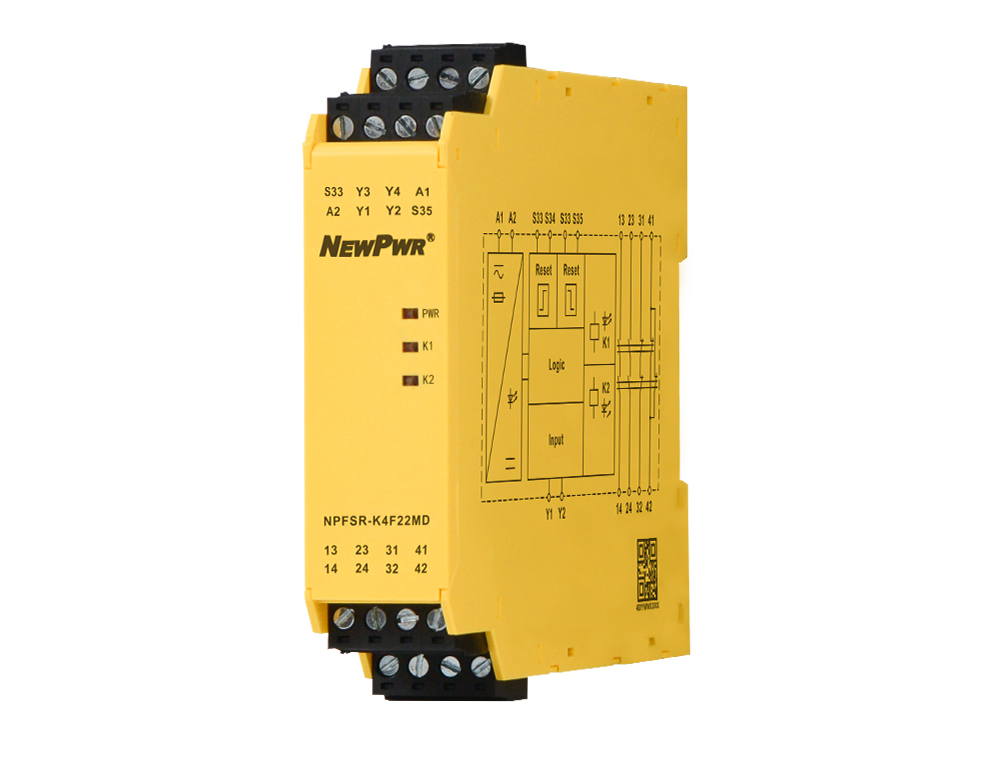 K series safety mat input safety relay is applicable to 4-wire NO contact safety mat input. When a certain weight is applied to the safety mat, the NO contact of the safety mat is closed, and the safety output contact of the control safety relay is open, so as to protect the operators in the dangerous area. Main features: 1oo2 architecture;With detection of input breakage;With monitored manual reset function;The safety function remains effective in the case of a component failure;The correct opening and closing of the safety function relays is tested automatically in each on-off cycle.