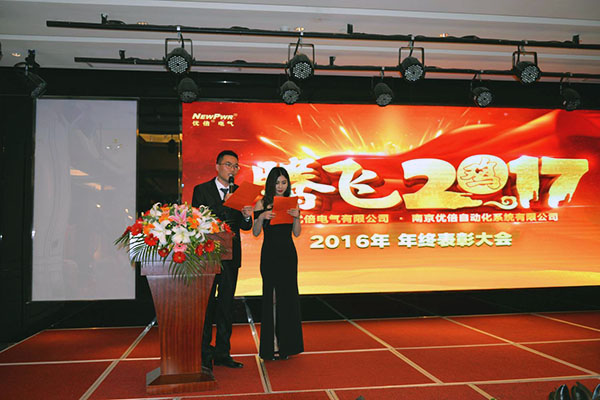 金雞報曉喜迎春,紅梅競放慶新年。優倍電氣2016年度總結表彰大會暨新春聯歡晚會于2017年1月17日在水晶藍灣酒店會議中心隆重舉行。
