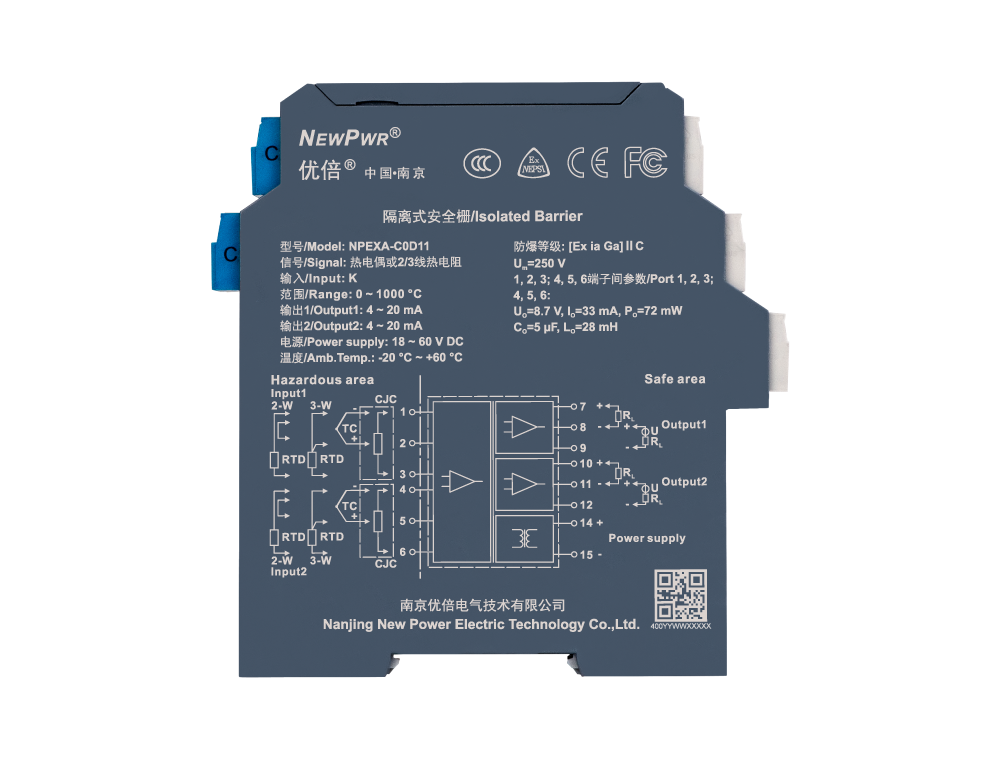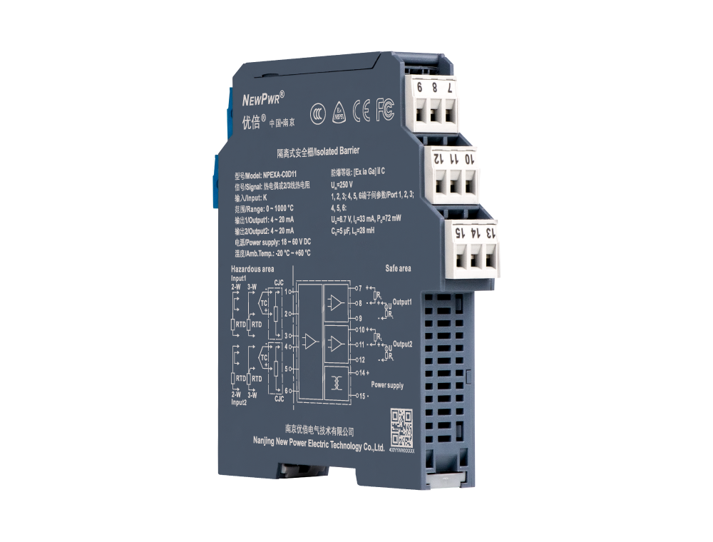 | 介電強(qiáng)度 | ≥ 3000 V AC (本安側(cè)與非本安側(cè));≥ 1500 V AC (電源與非本安側(cè)) |